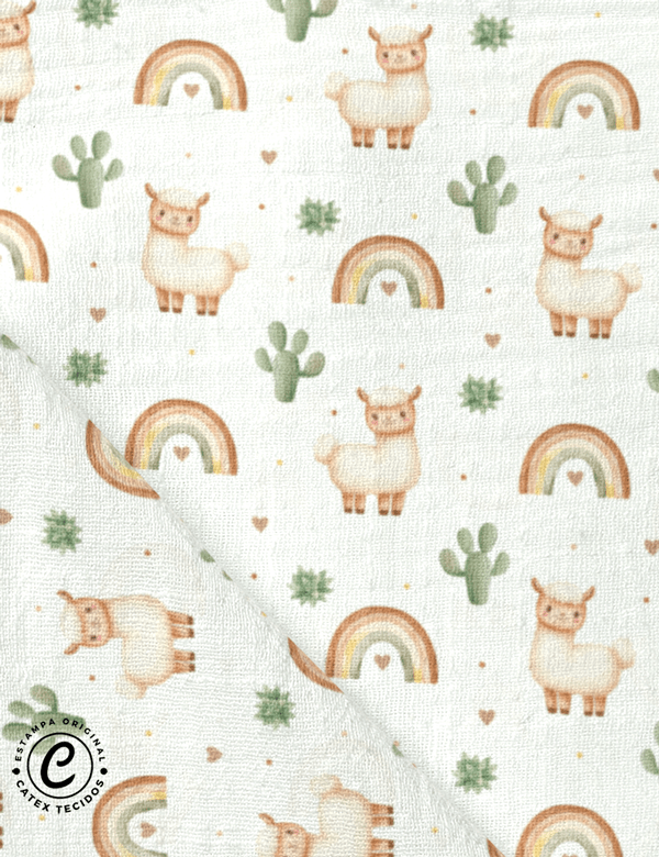 Tecido Fralda Estampada - Lhama Fofinha - 100% Algodão - 70cm x 70cm